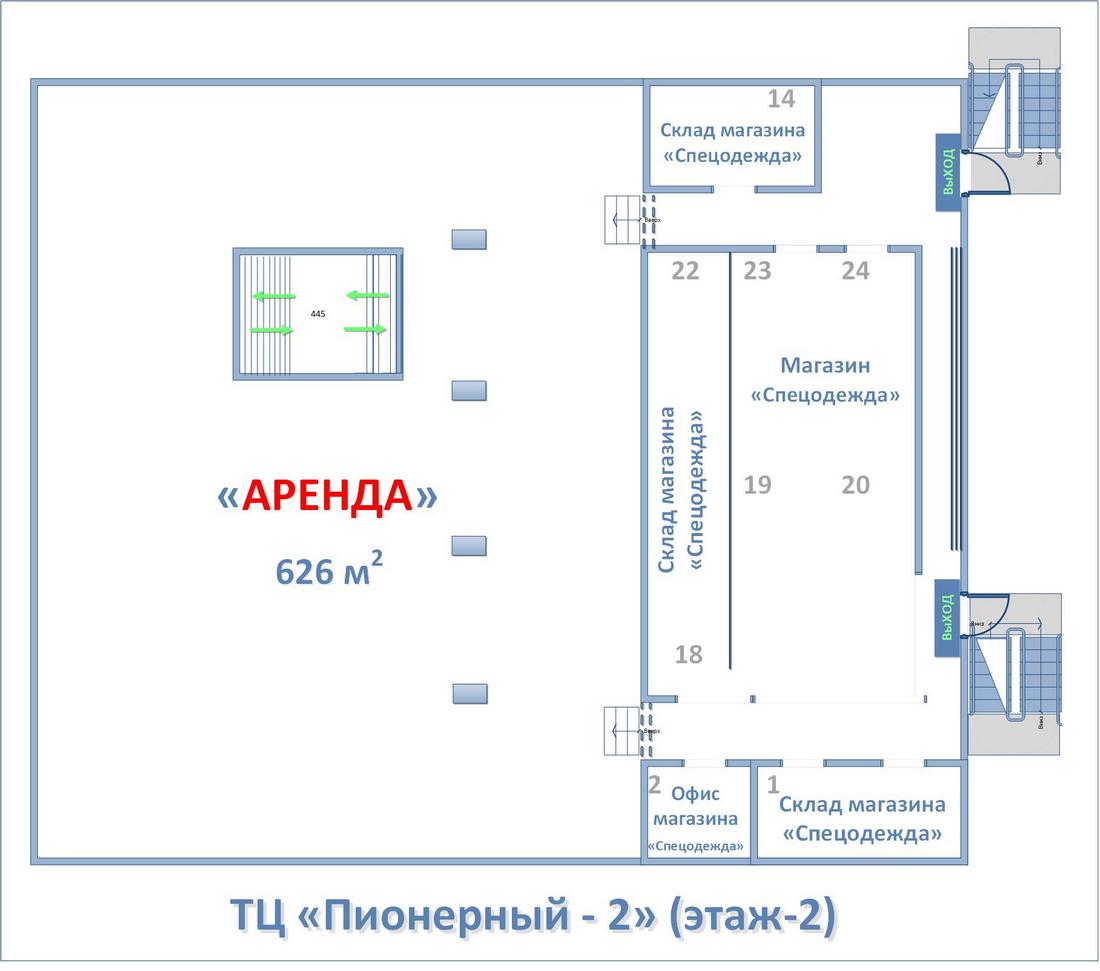 Офис ООО "ЭКО-ГАЗ", управляющей компании ТК "Пионерный" - 2-х этажное капитальное здание общей площадью 1191 м2, введен в эксплуатацию 09.10.2009 г.